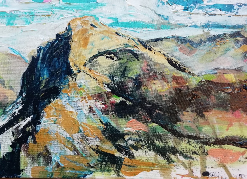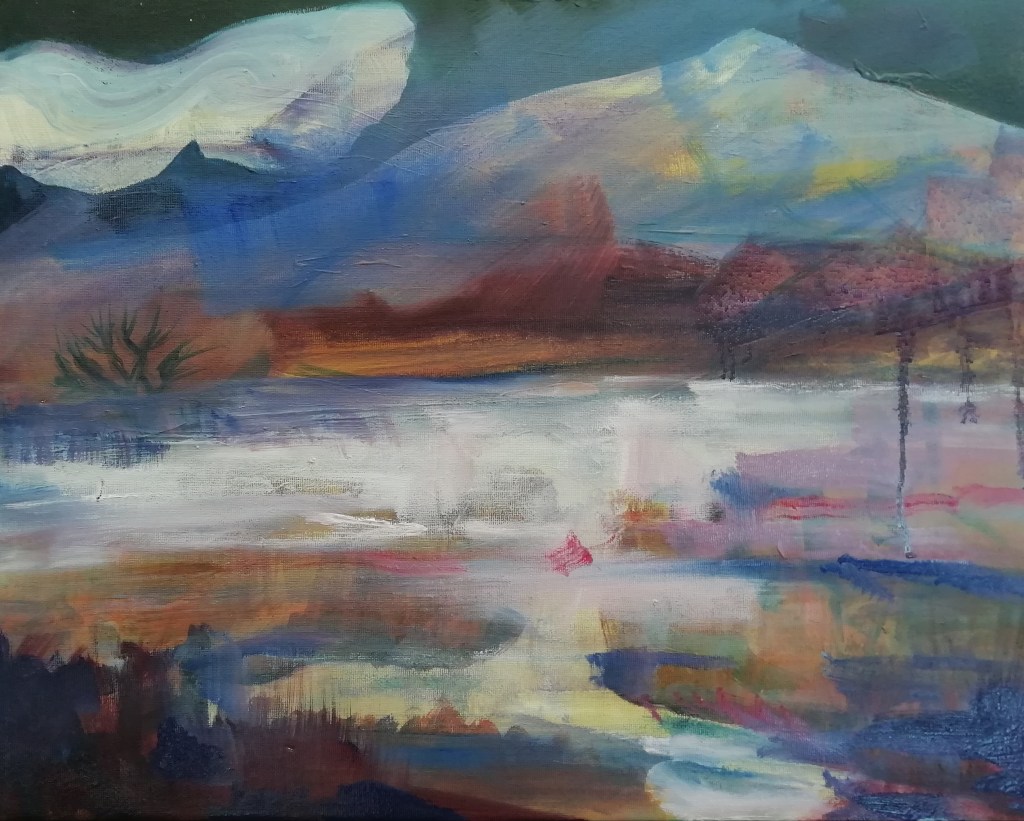 The following paintings are from my recent M.A. show in Aberystwyth. Much larger in scale than previous work, abstracted and loose. All on hand stretched deep canvas unframed. Please contact me if interested in purchasing them or looking in more detail.